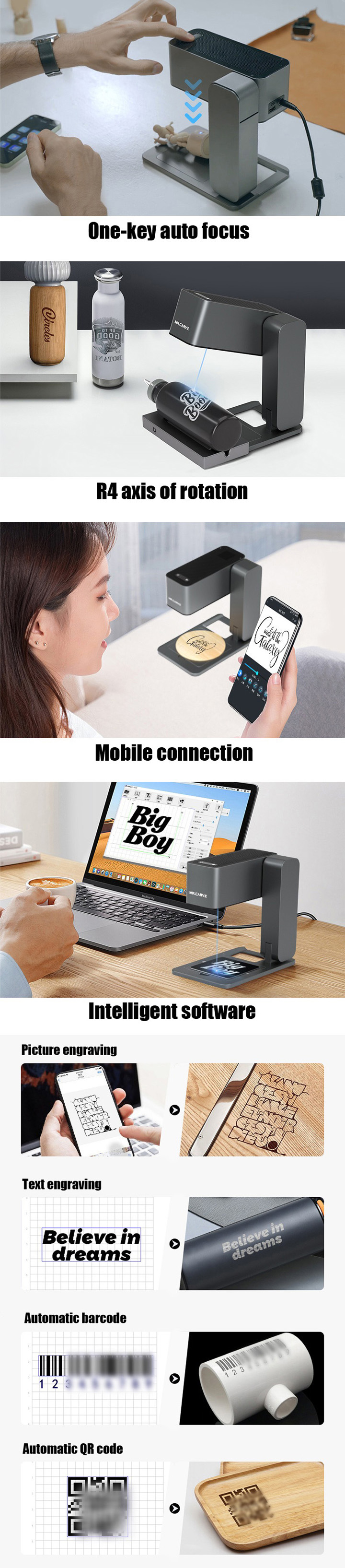 Deze laser graveermachine is klein en gemakkelijk mee te nemen. Je kunt hem in je rugzak stoppen en altijd en overal gebruiken.