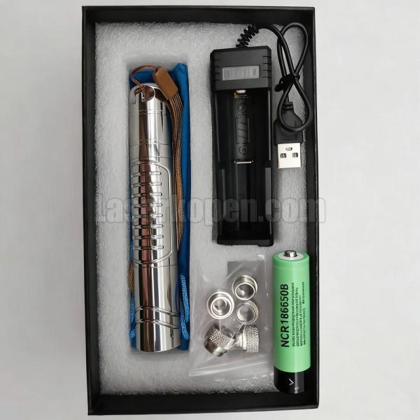 Deze laserpen heeft een duurzame roestvrijstalen behuizing, circuitoptimalisatie en PCB-bescherming. Het heeft vermogenstests, kwaliteitsinspectie en FDA- en CE-certificeringen doorstaan. Het uitgangsvermogen bedraagt maximaal 200 mW. De groene laser van 520 nm heeft een groot bereik en is stabiel, geschikt voor astronomische toepassingen. Als u kiest voor een groene laserpen met groot bereik, is dit model een goede keuze.