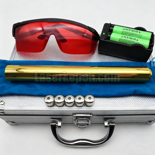 3) Professioneel pakket: koperen laserpen + vier 18650 lithiumbatterijen + professionele oplader + vijf patroonkoppen + veiligheidsbril + stofvrij doekje + Engelse instructies + explosieveilige aluminium doos
