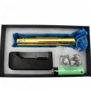 3) Professioneel pakket: 589 nm gele laserpointer + twee 18350-batterijen + professionele oplader + vijf patroonkoppen + opbergdoos